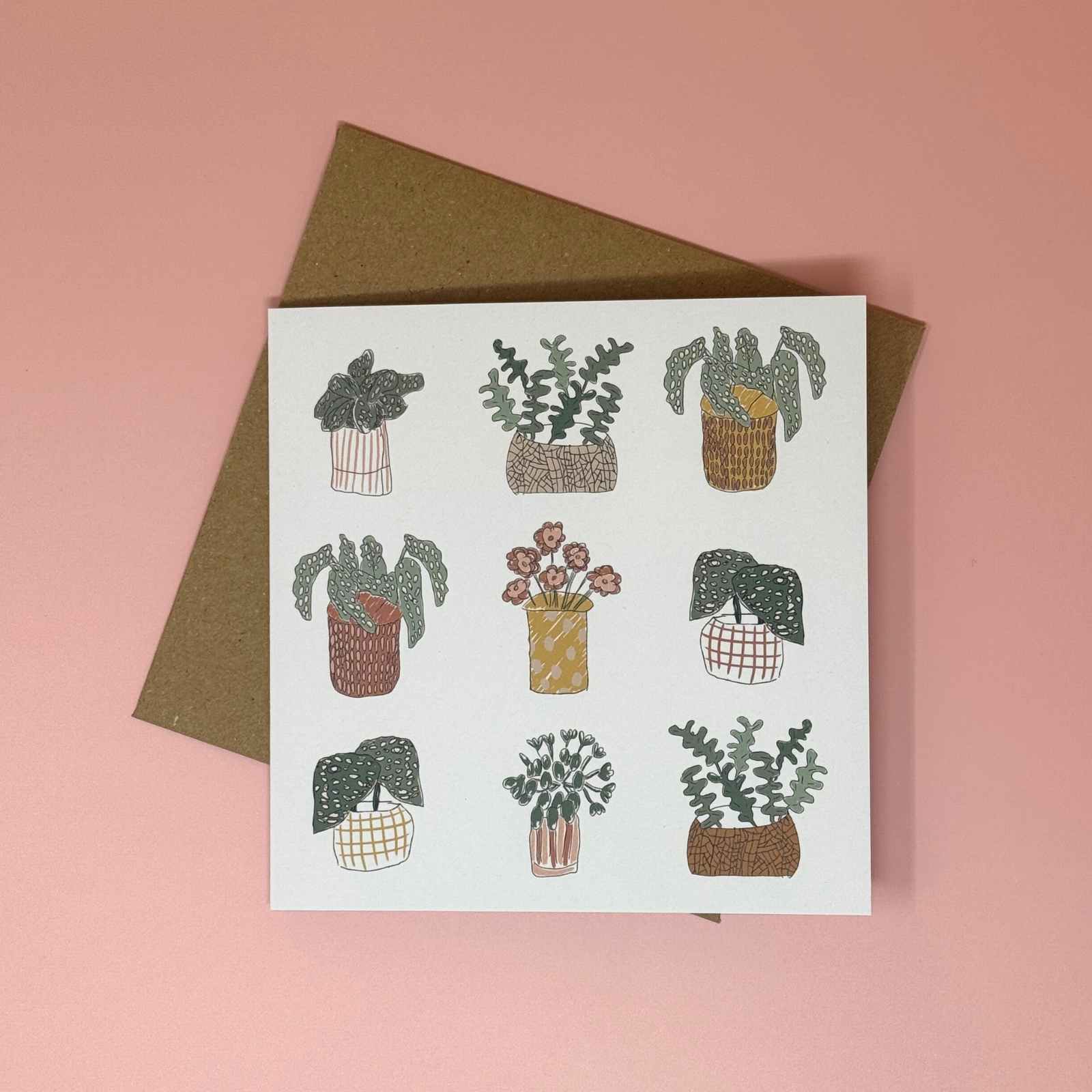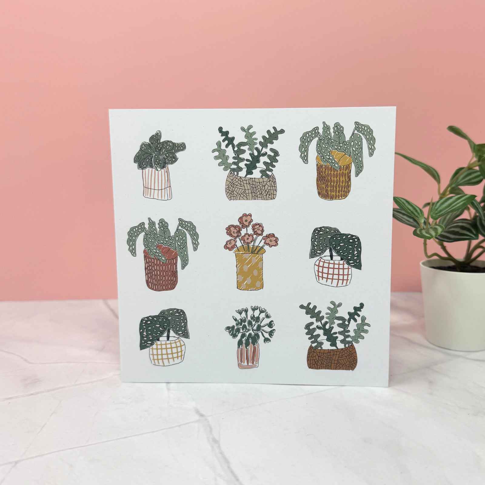 A beautiful greetings card with stylish plant print. All our cards are hand-illustrated by adults with learning disabilities and / or Autism at our parent organisation, Nickel Support during art sessions.
