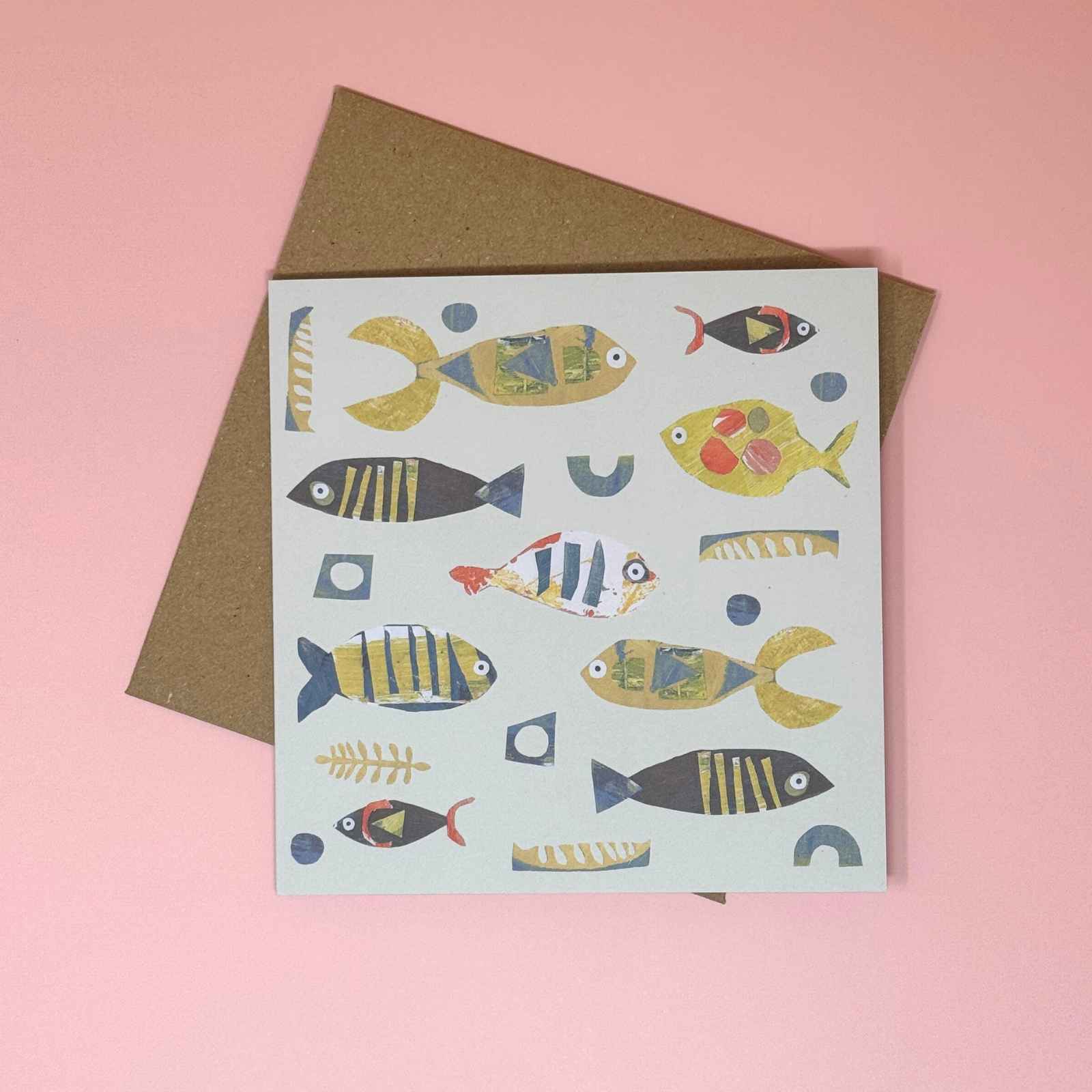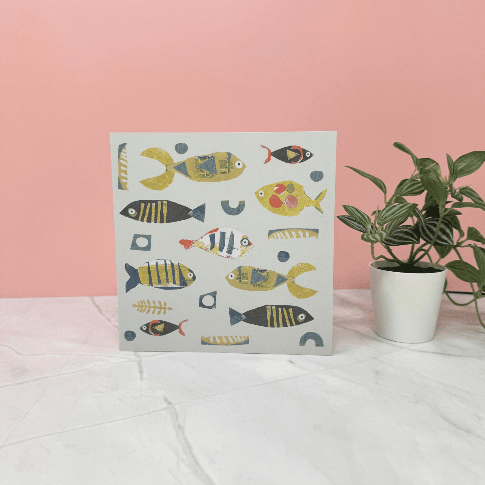 A beautiful greetings card with stylish fish print. All our cards are hand-illustrated by adults with learning disabilities at our parent organisation, Nickel Support during art sessions.