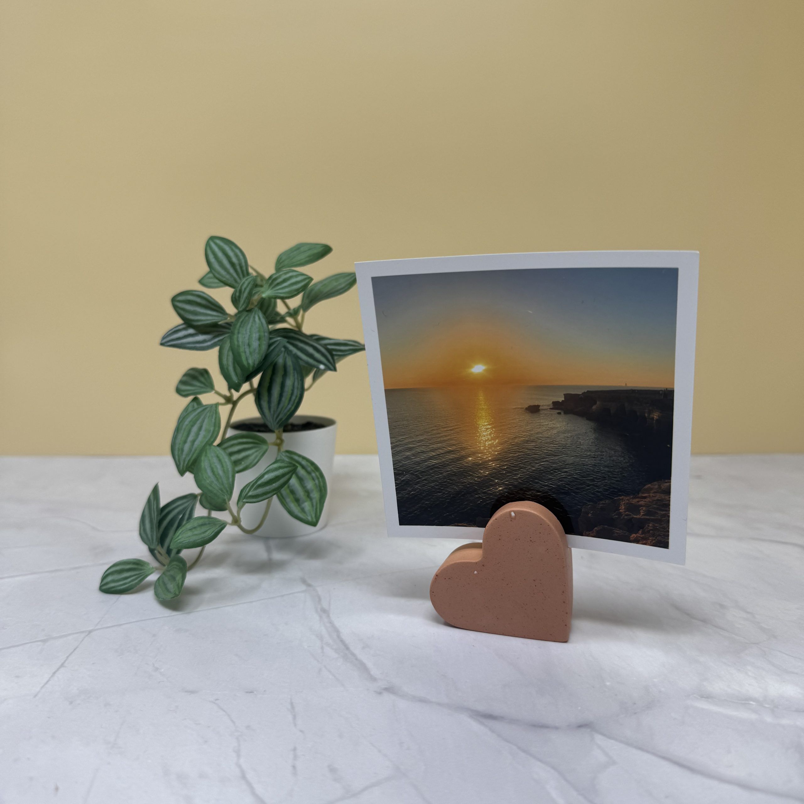 Jesmonite Eco-resin heart shaped Photo Holder that has been handmade by adults with learning disabilities and / or autism at Nickel Support.