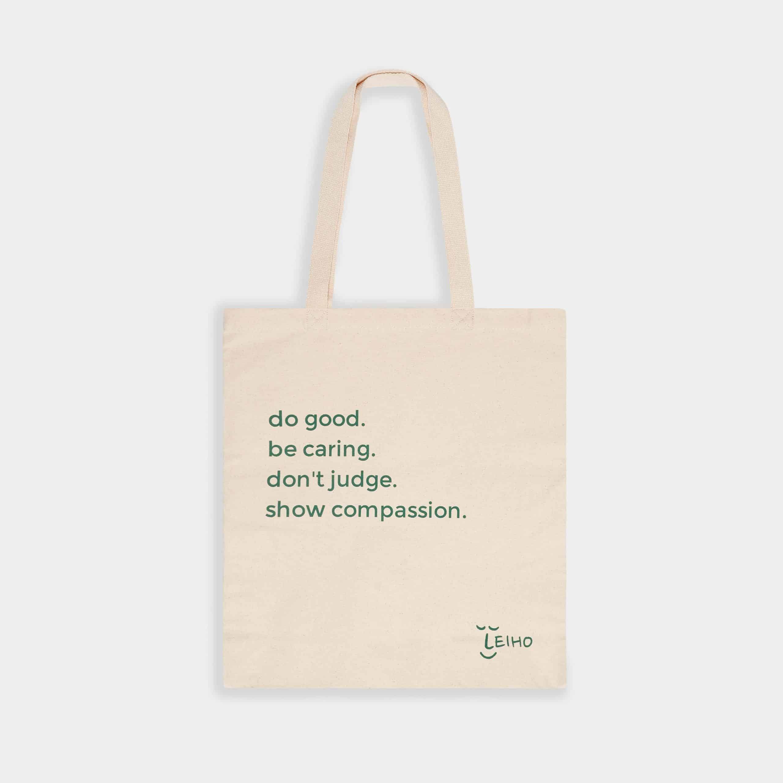 Thick and premium canvas tote bag from Leiho. The perfect everyday bag to remind you to stay positive and do good. It’s spacious, durable and a portion of the profits help us support local charities and organisations.